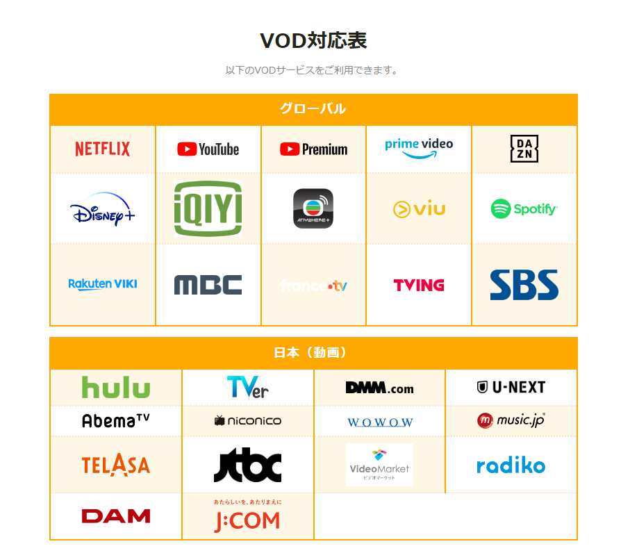 対応している動画配信サイトを公式サイトで記載してくれています。