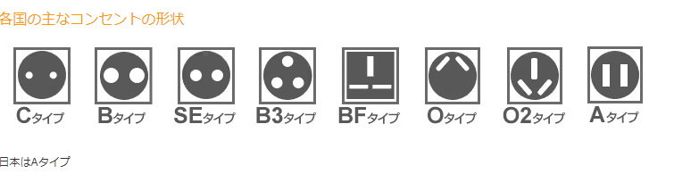 海外ではコンセントの形状が日本とは違うことが多いです。